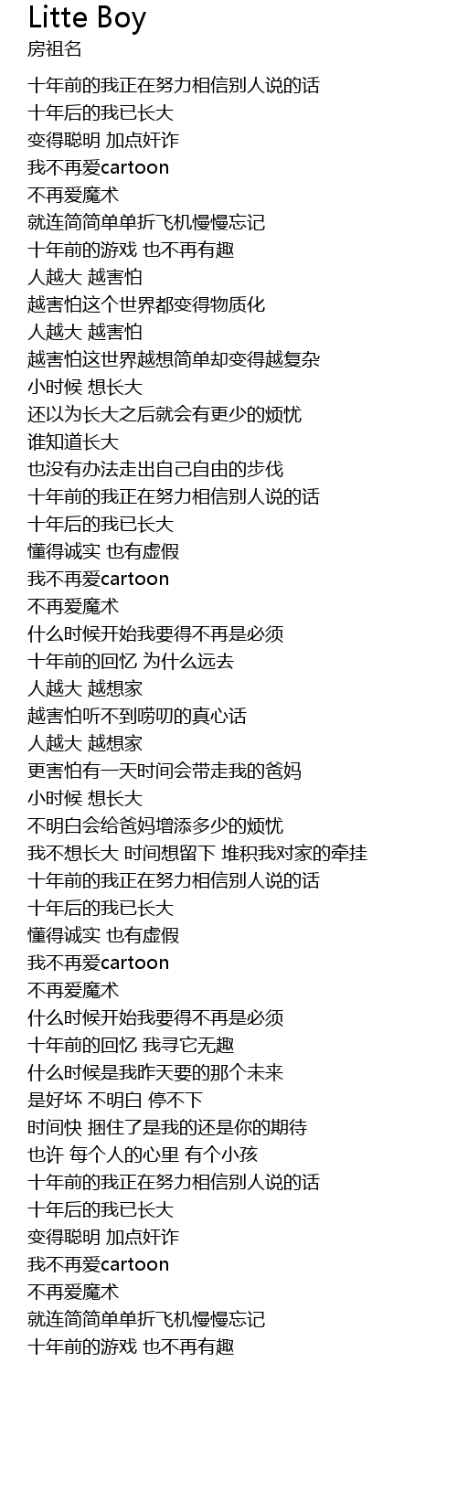 | [00:49.38] | 还以为长大之后就会有更少的烦忧 |