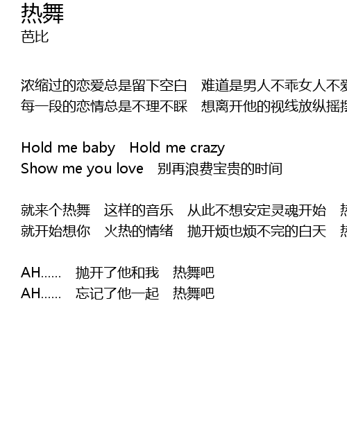 | 就开始想你 火热的情绪 抛开烦也烦不完的白天 热舞吧 | |