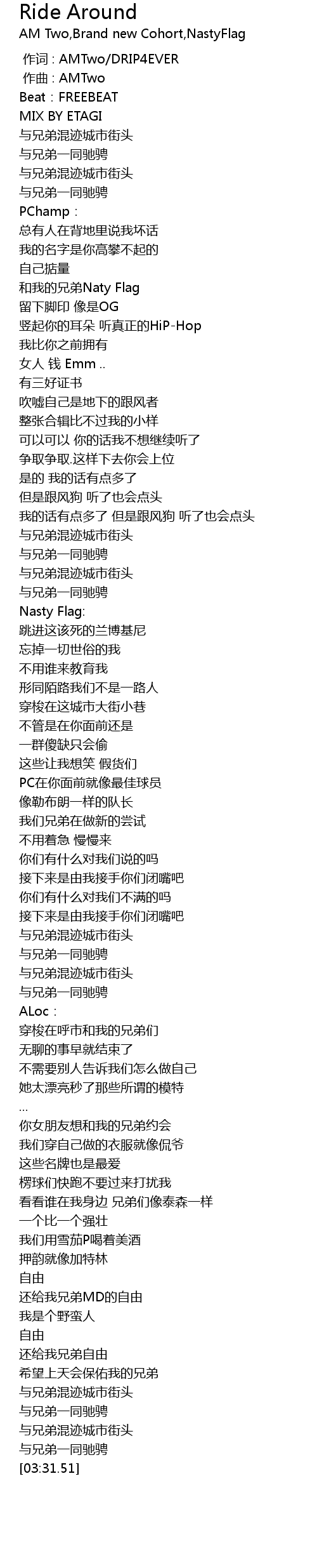 | [00:43.57] | 和我的兄弟Naty Flag |