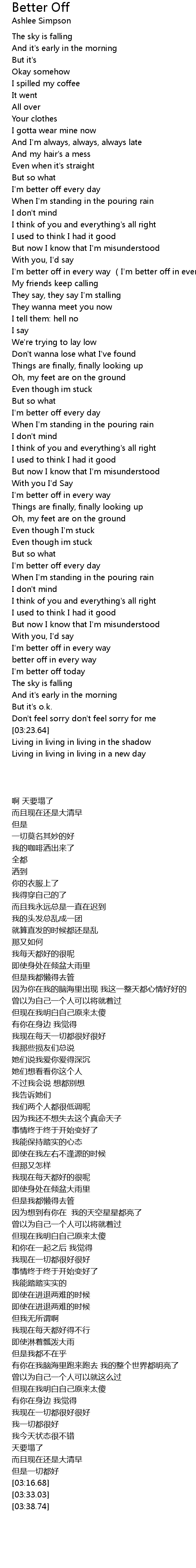 | [01:02.69] | I'm better off in every way (I'm better off in every way) |