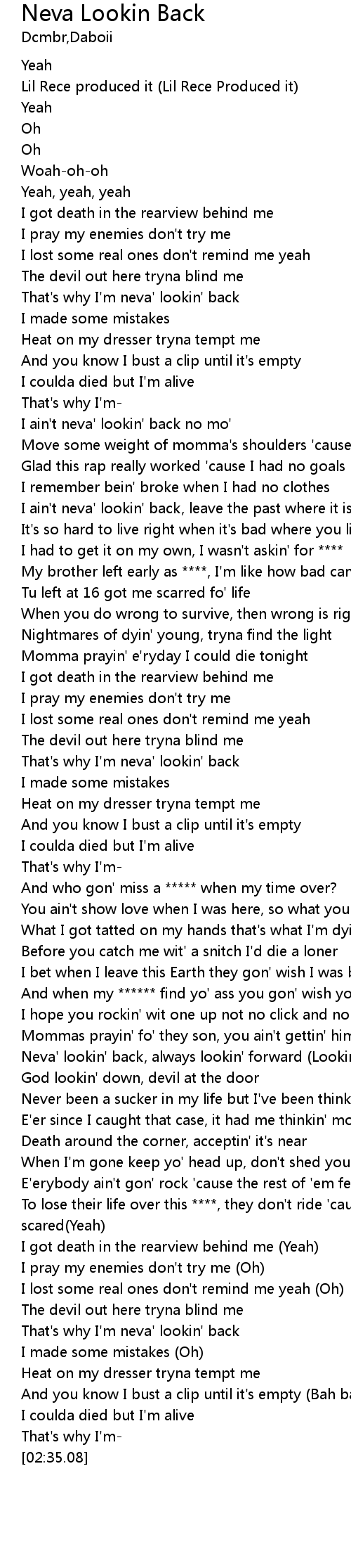 | [00:29.81] | That's why I'm neva' lookin' back |