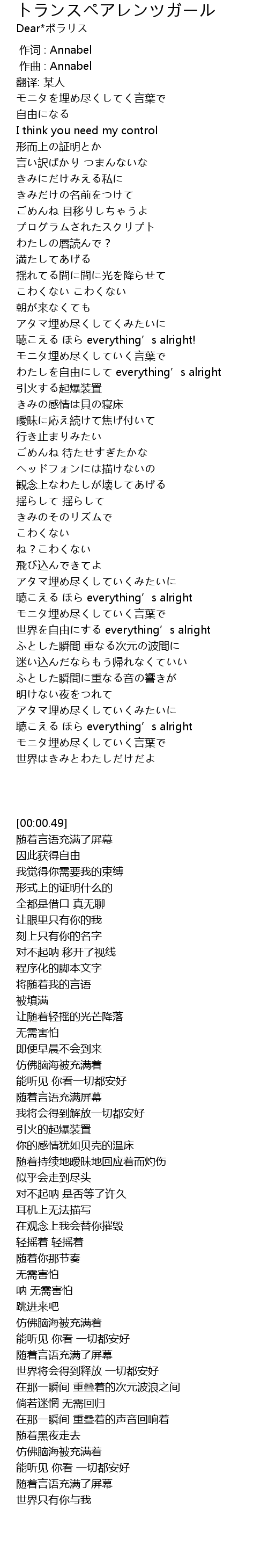| 歌曲 | トランスペアレンツガール |