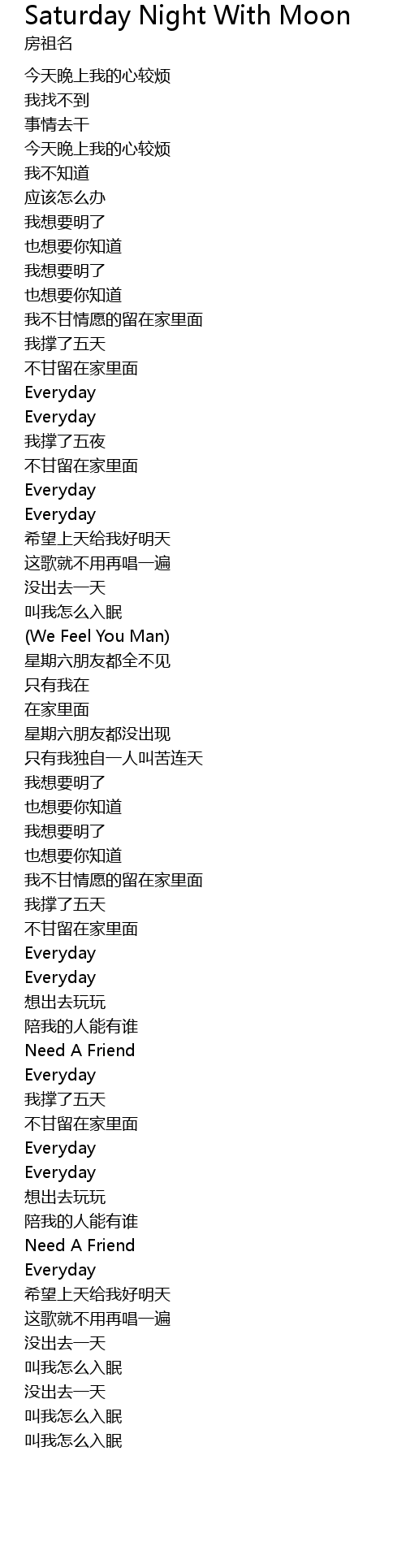 | 歌曲 | Saturday Night With Moon |
