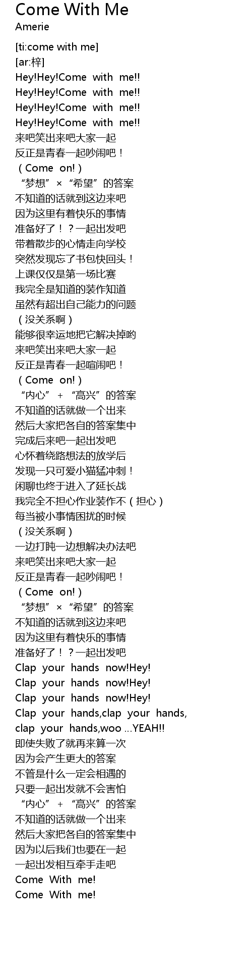 | [00:10.48] | Hey!Hey!Come with me!! |