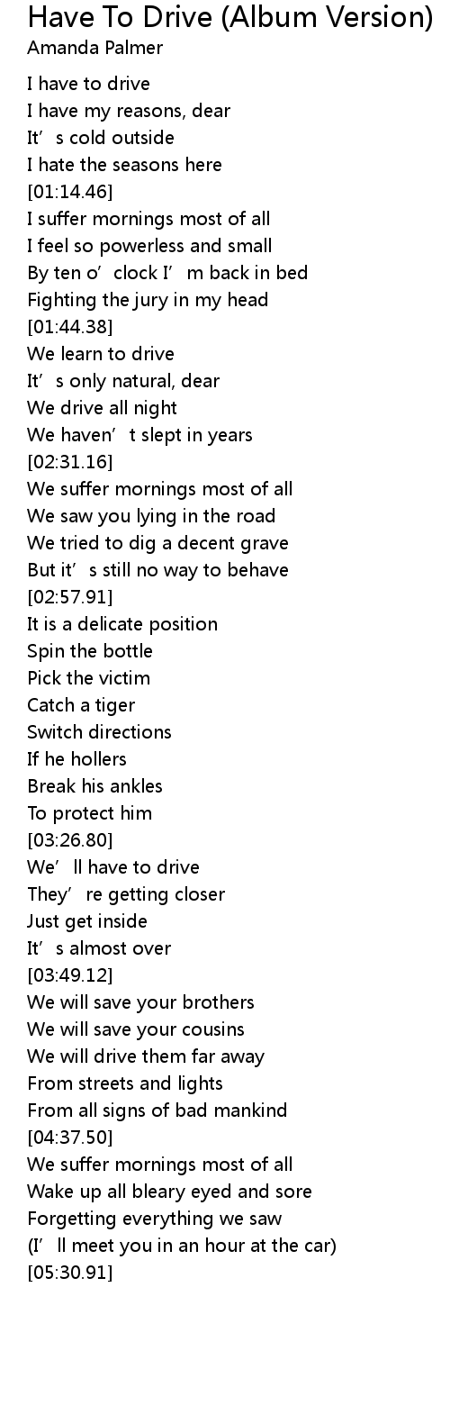 | [01:29.58] | By ten o’clock I’m back in bed |