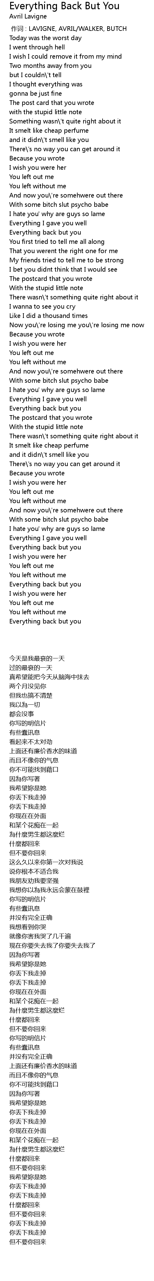 | [00:00.00] | 作词 : LAVIGNE, AVRIL/WALKER, BUTCH |