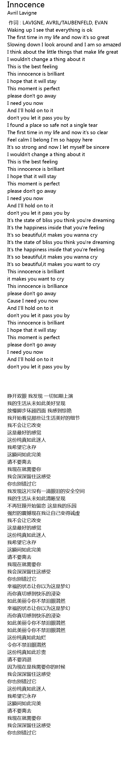 | 歌曲 | Innocence |