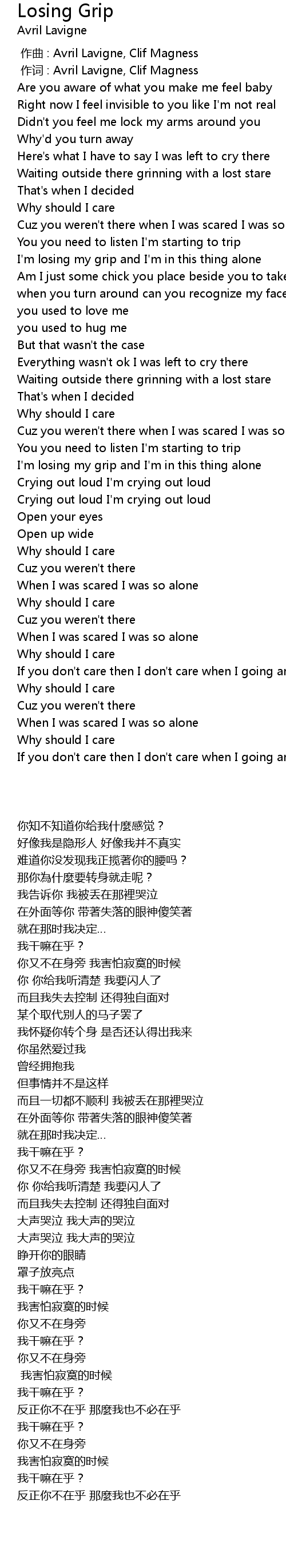 | [00:01.00] | 作词 : Avril Lavigne, Clif Magness |