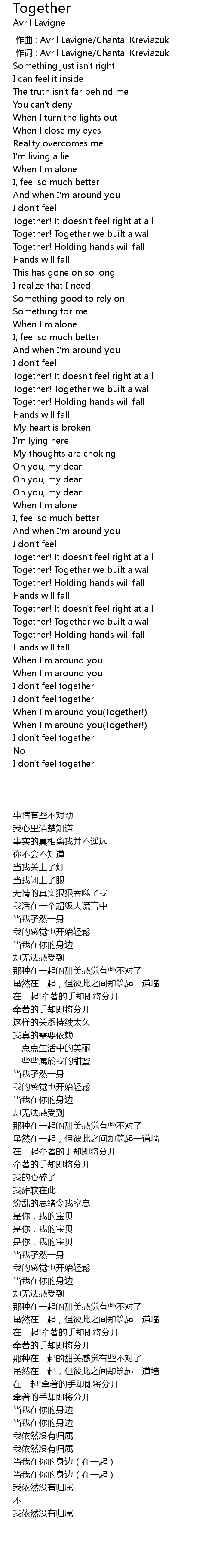 | [00:01.00] | 作词 : Avril Lavigne/Chantal Kreviazuk |