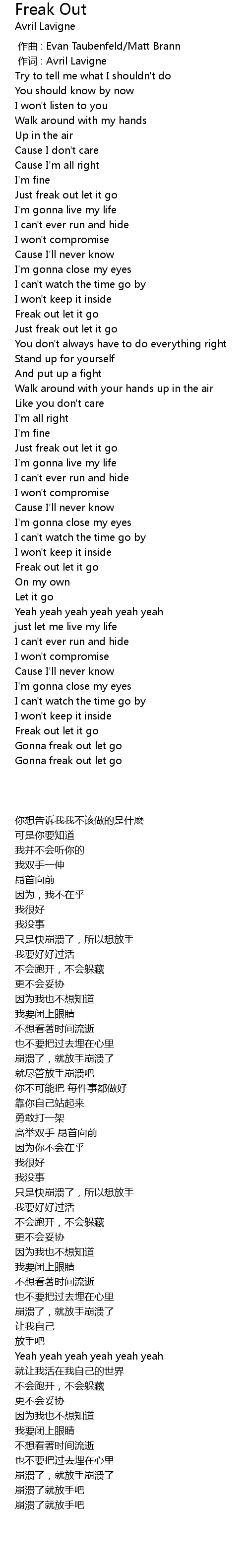 | [00:01.00] | 作词 : Avril Lavigne |