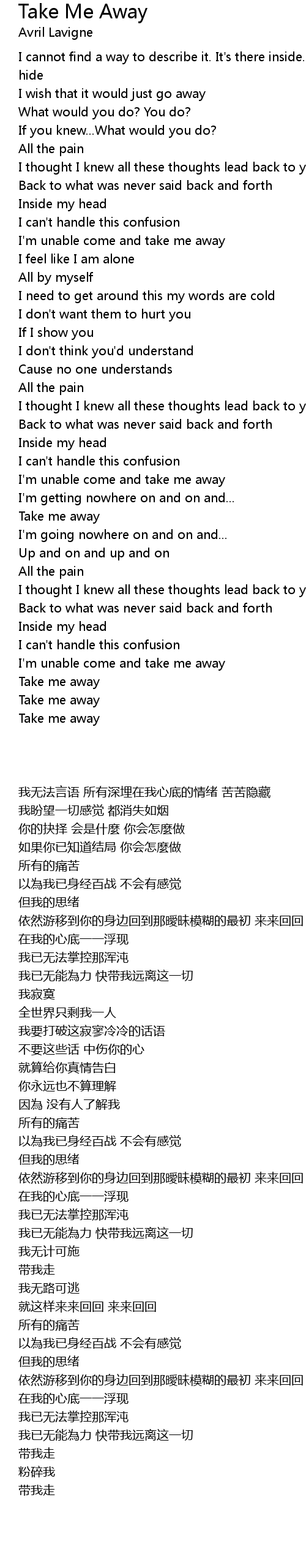 I'm unable come and take me away |