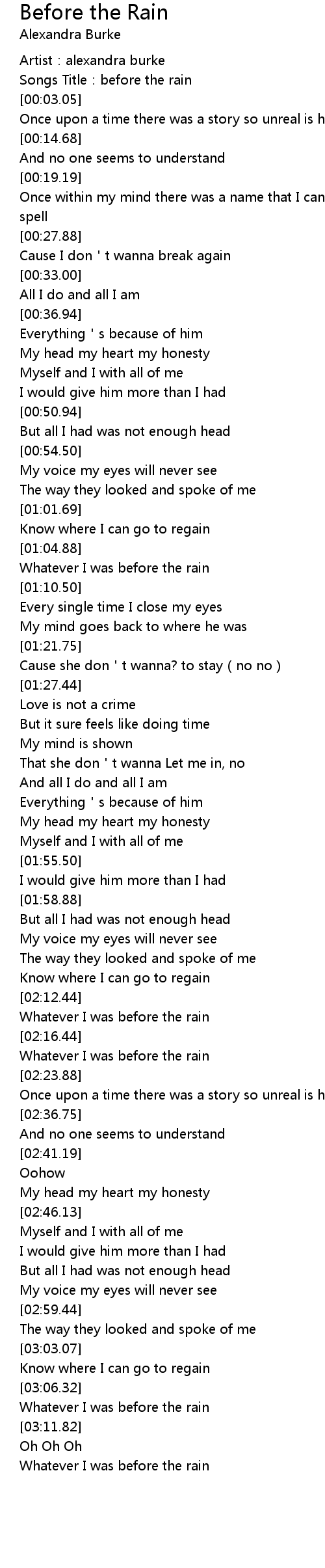 | [03:14.57] | Whatever I was before the rain |