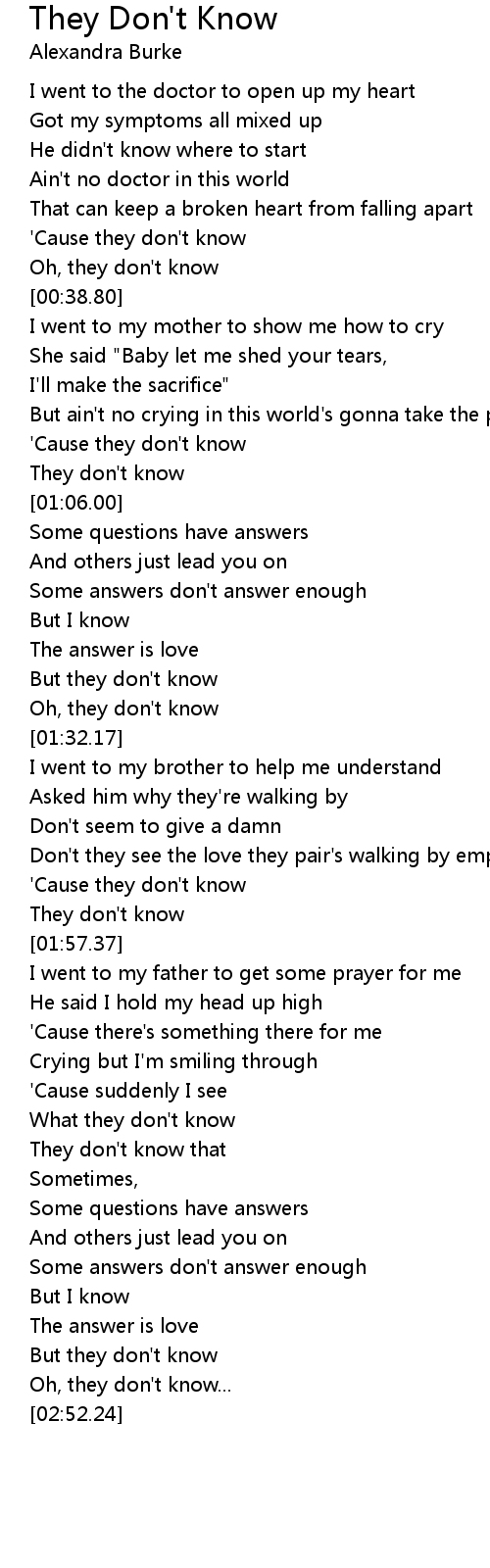 'Cause they don't know |