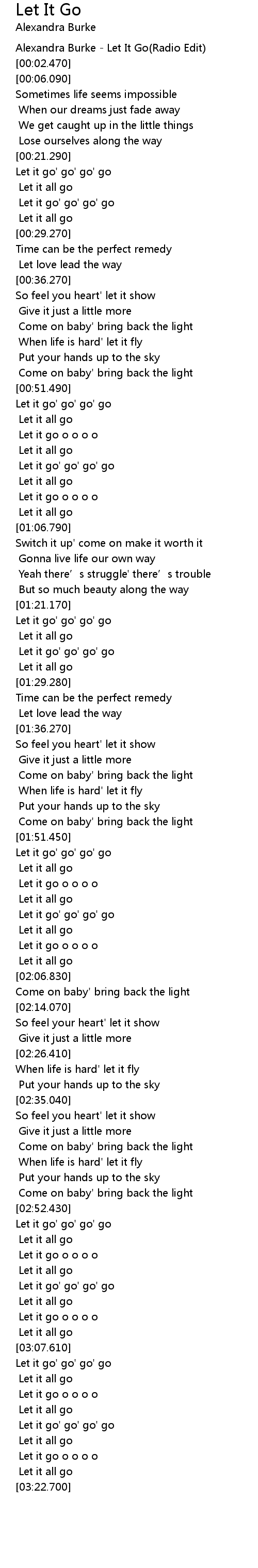| [00:00.000] | Alexandra Burke - Let It Go(Radio Edit) |