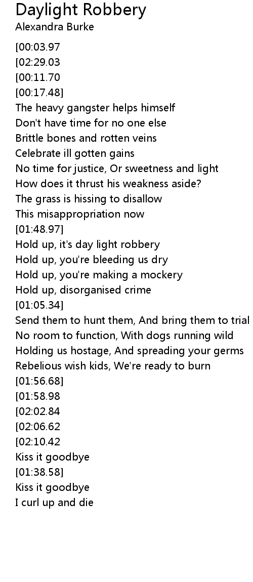 | [00:50.81] | Hold up, it' s day light robbery |