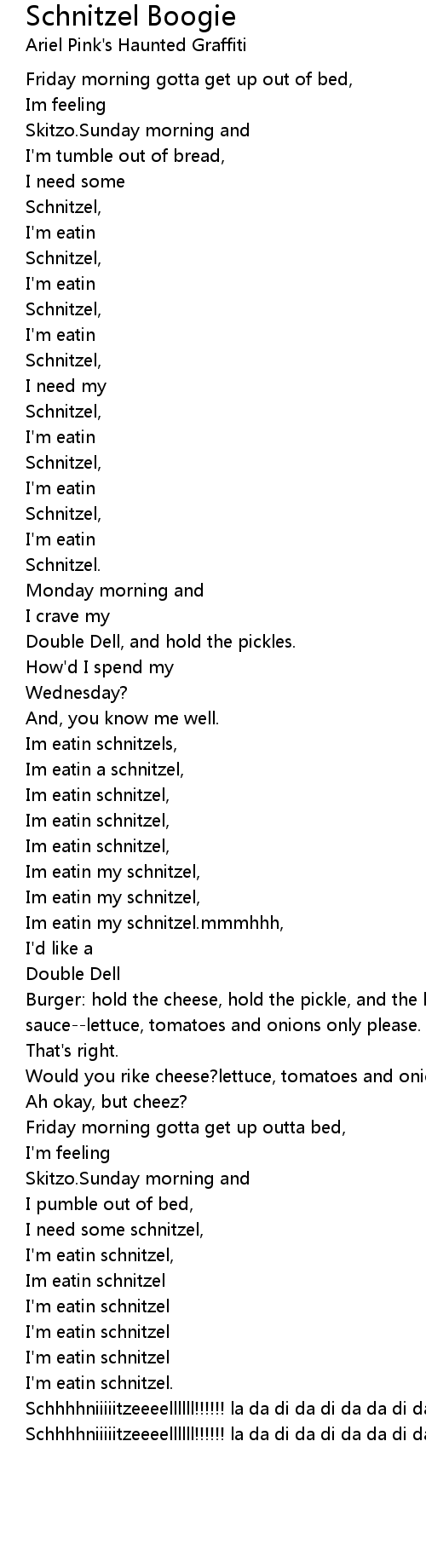 Im eatin a schnitzel, |