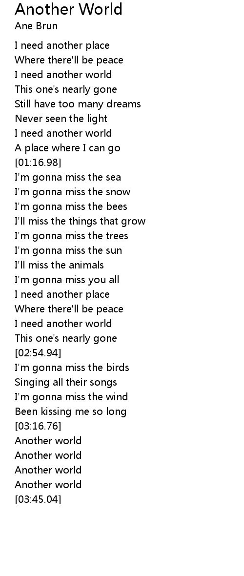 | [00:39.04] | I need another world |