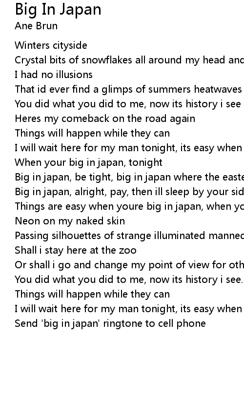 Big in japan, be tight, big in japan where the eastern seas so blue |