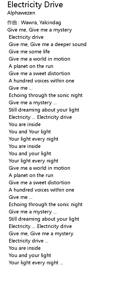 | 歌曲 | Electricity Drive |