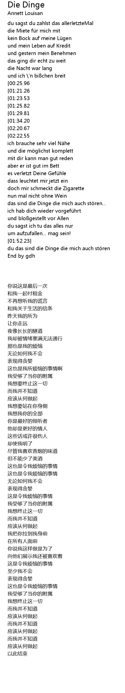 | [01:17.07][00:25.96] | das sind die Dinge die mich auch st ren |