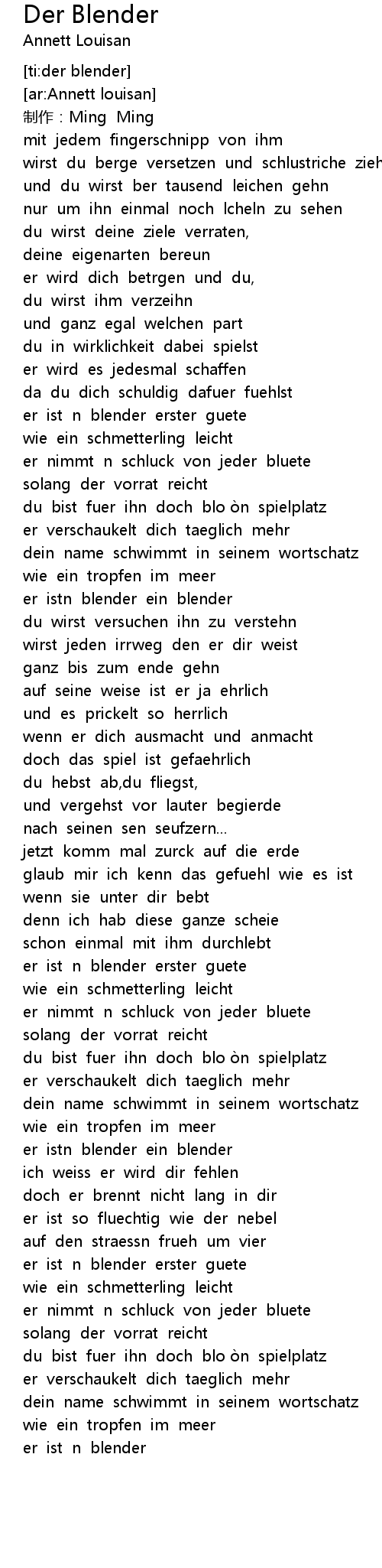 | [02:29.10] | er istn blender ein blender |