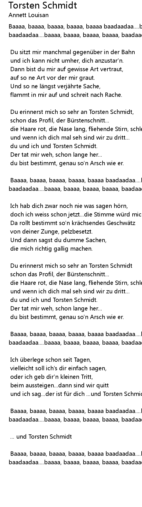 | Du erinnerst mich so sehr an Torsten Schmidt, | |