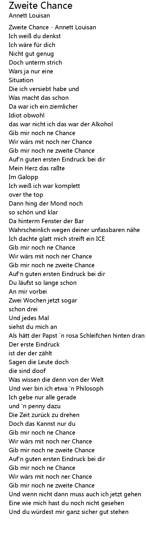 | Gib mir noch ne zweite Chance | |