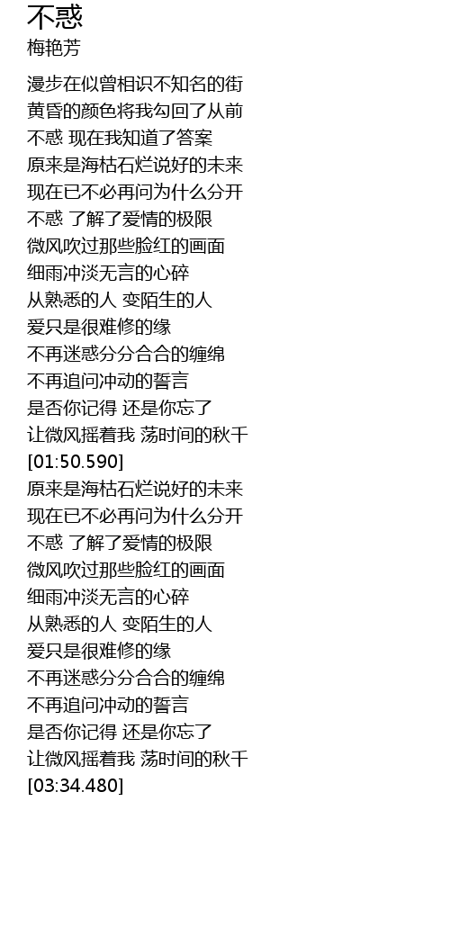 | [00:46.500] | 不惑 了解了爱情的极限 |