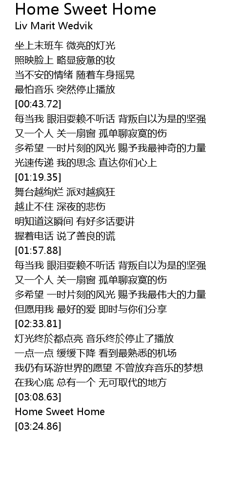 | [03:13.74] | Home Sweet Home |