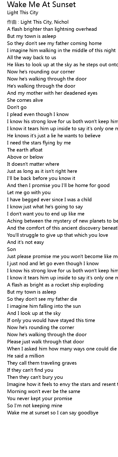 | Wake me at sunset so I can say goodbye |