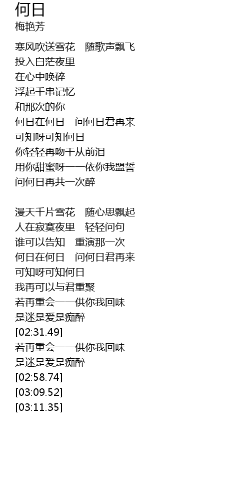 | [01:55.92] | 何日在何日 问何日君再来 |