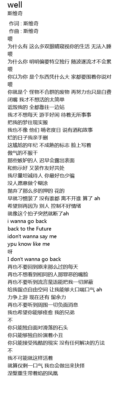 | [00:00.000] | 作词 : 斯维奇 |