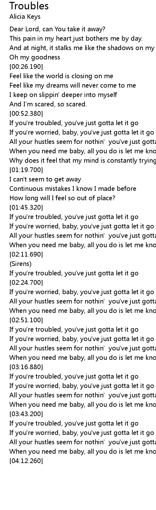 | [03:43.570] | If you're troubled, you've just gotta let it go |