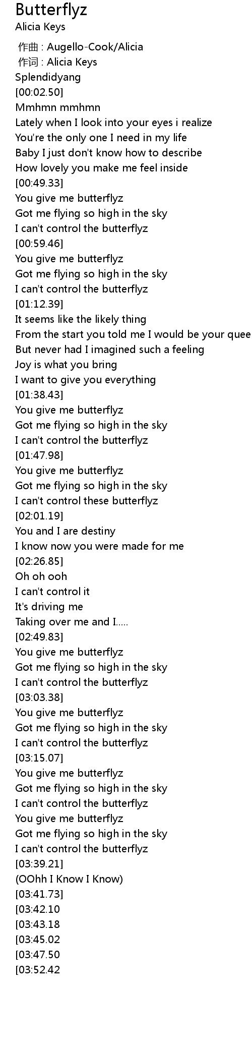 | [03:36.46] | I can' t control the butterflyz |