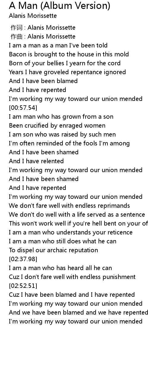 | [00:00.000] | zuò cí : Alanis Morissette |