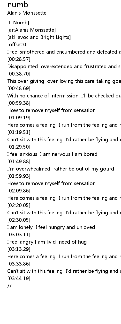 Can't sit with this feeling I'd rather be flying and confortably numb |
