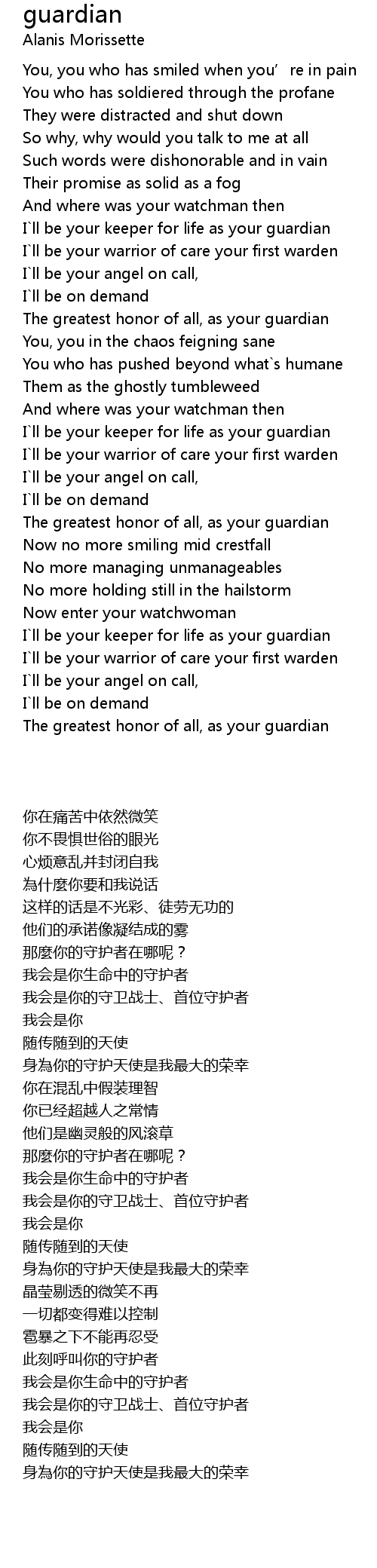 | [03:08.580] | I ll be your keeper for life as your guardian |