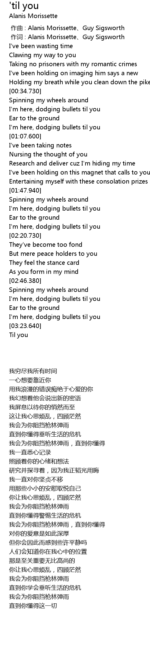 | [00:01.00] | zuò cí : Alanis Morissette Guy Sigsworth |