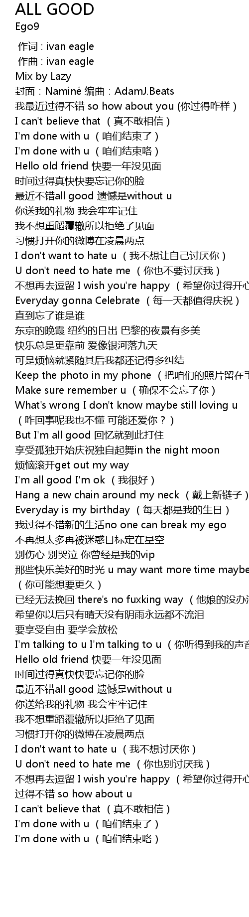 | [01:13.333] | I'm all good I'm ok (我很好) |