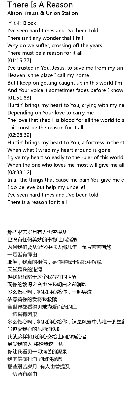| 歌曲 | There Is A Reason |