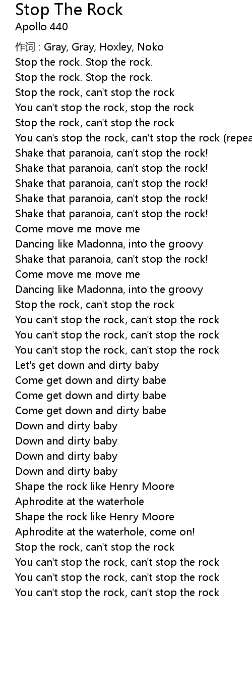 | You can' s stop the rock, can' t stop the rock repeated 4 times | |