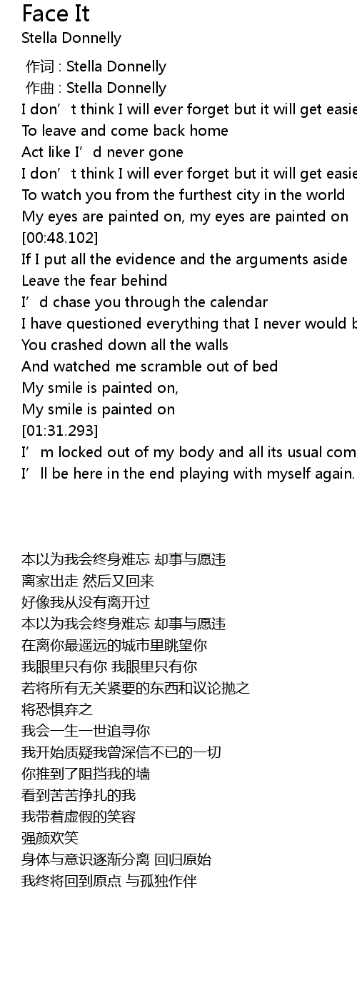 | [00:38.435] | My eyes are painted on, my eyes are painted on |