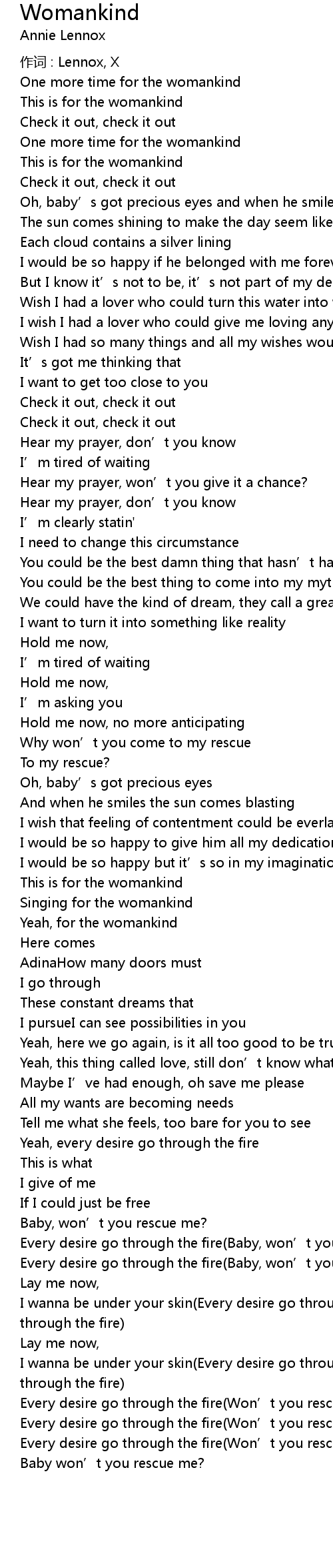 | Every desire go through the fire(Baby, won’t you rescue me?) | |