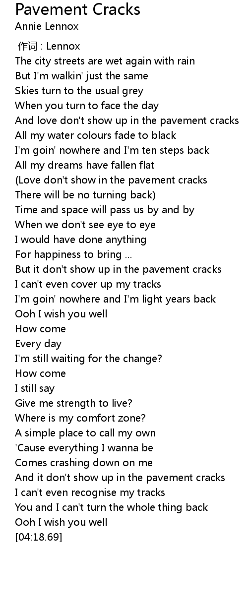 | [00:50.23] | And love don't show up in the pavement cracks |