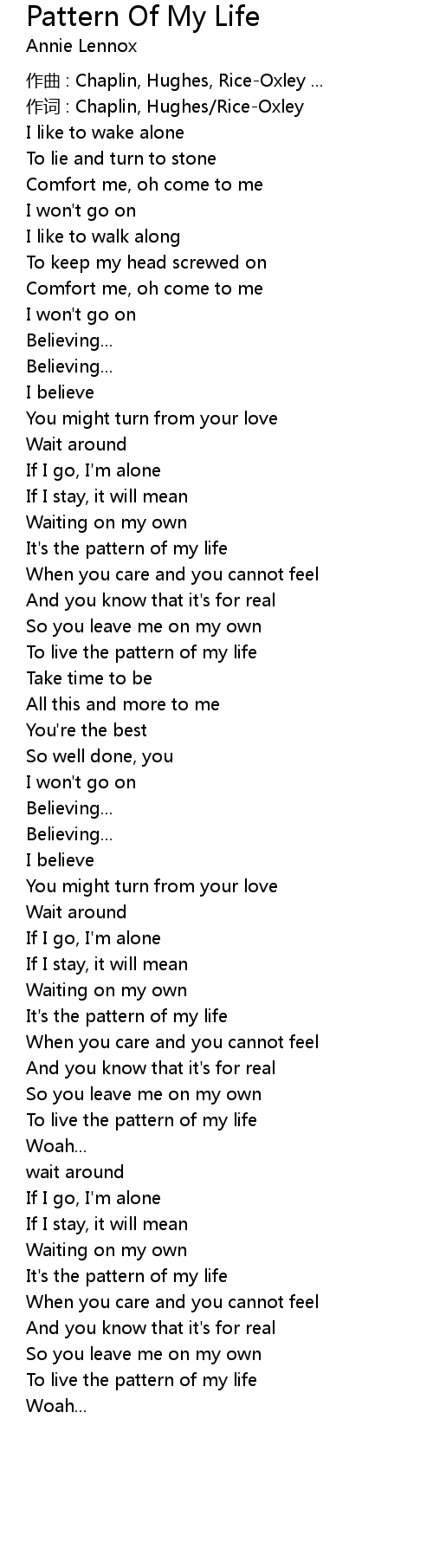 | It' s the pattern of my life | |