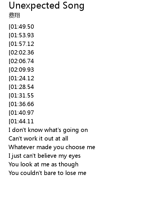 | [00:50.17][01:40.97][02:32.37][02:46.40] | An unexpected song |