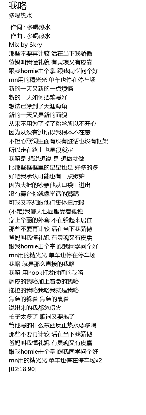 | [01:57.34] | mn用的精光光 单车也停在停车场x2 |
