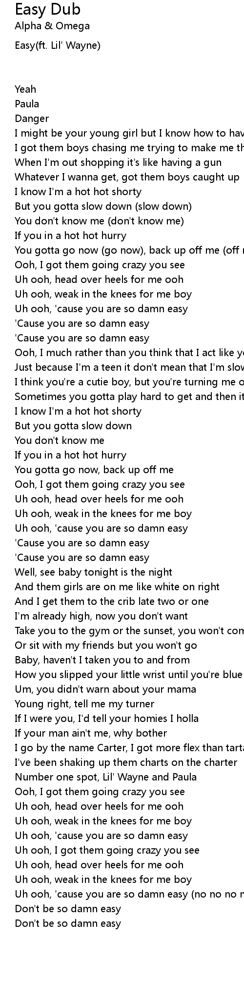 Uh ooh, 'cause you are so damn easy