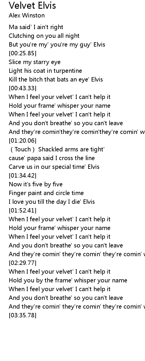 | [02:30.39] | When I feel your velvet' I can't help it |