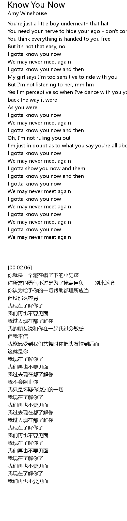 I gotta know you now |